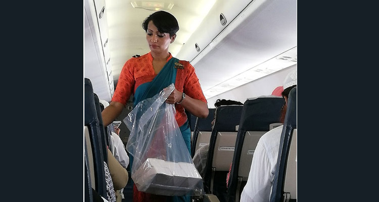 পলিথিন নিষিদ্ধ। সেই পলিথিনের দেখা মিলল মাঝ আকাশে। না উড়ে বেড়াচ্ছে না, বিমান বাংলাদেশের কল্যাণে দেখা মিলল সেই পলিথিন। এমনিতে নয়- কাজেই ব্যবহৃত হচ্ছিল। সাধারণত উড়োজাহাজ গুলোতে যাত্রীদের খাবার সরবরাহ করা হয়ে থাকে একটি ট্রলিতে। পরে আরেকটি ট্রলিতে অপর এয়ার হোস্টেজ নিয়ে আসেন পানির বোতল।