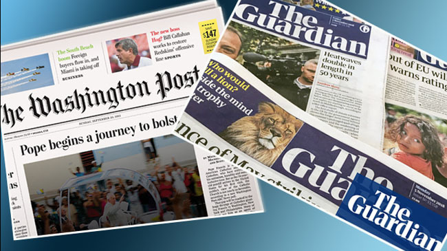 চীনে যুক্তরাষ্ট্রভিত্তিক পত্রিকা ওয়াশিংটন পোস্ট ও ব্রিটেনের দ্য গার্ডিয়ান ব্লক করে দিয়েছে দেশটির সরকার। এখন থেকে চীনের নাগরিকরা ইন্টারনেটের মাধ্যমে পত্রিকা দুটি আর পড়তে পারবেন না। খবর বিজনেস ইনসাইডার।