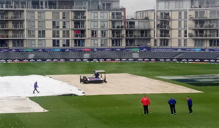 সেই আশায় জল ঢেলে দিল বৃষ্টি। ব্রিস্টলে দিনভর বৃষ্টির প্রকোপে মাঠ প্রস্তুত করা যায়নি। দুই দফা মাঠ পরিদর্শন করেও ইতিবাচক কিছু জানাতে পারেননি আম্পায়াররা। অবশেষে ঘোষণা এলো ম্যাচ পরিত্যক্ত হওয়ারই। স্থানীয় সময় ১টা ৫৭ মিনিটে (বাংলাদেশ সময় ৬টা ৫৭) ম্যাচ পরিত্যক্ত ঘোষণা করেছেন আম্পায়াররা।