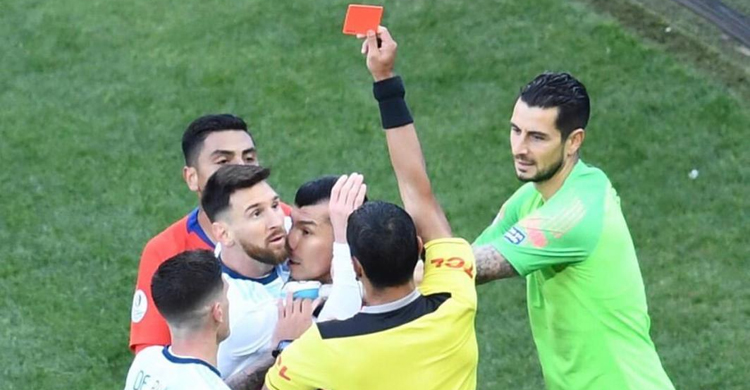 এদিকে শিরোপা জেতার স্বপ্ন শেষ হওয়ার পর তৃতীয় স্থান নির্ধারণী ম্যাচে খেলতে নেমে হতাশার এক অর্জনই হলো আর্জেন্টাইন তারকা লিওনেল মেসির। প্রায় ১৪ বছর পর দ্বিতীয়বারের মতো লাল কার্ড দেখতে হয়েছে তাকে। ২০০৫ সালে আর্জেন্টিনার জার্সিতে নিজের অভিষেক ম্যাচেই প্রথম লাল কার্ড দেখেছিলেন মেসি। করিন্থিয়াস এরেনায় ম্যাচের ৩৭ মিনিটের মাথায় পাওলো দিবালার বাড়ানো বল মাঠের মধ্যে রাখতে গিয়ে চিলির ডিফেন্ডার গ্যারি মেডেলের সঙ্গে সংঘর্ষ বেঁধে যায় মেসির। মেডেল বারবার ধাক্কা মারতে থাকলেও মেসি ছিলেন নির্লিপ্ত। তবু মেডেলকে ফাউল করতে উৎসাহিত করার অপরাধে এবং মাথা দিয়ে আঘাত করার ইঙ্গিত করায় মেডেলের সঙ্গে মেসিকেও লাল কার্ড দেখান মেসি। ফলে দুই দলই পরিণত হয় দশ জনে। এদিকে মেসি লাল কার্ড দেখে মাঠ ছাড়লেও প্রথমার্ধে এগিয়ে থাকে আর্জেন্টিনাই। তৃতীয় হওয়ার মিশনে ম্যাচের প্রথম ৪৫ মিনিটেই জোড়া গোল করে ফেলে লিওনেল স্কালোনির শিষ্যরা।