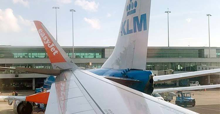 প্রতিবেদনে জানানো হয়েছে, উড্ডয়ন করার পর ইজি জেটের বিমানটি টার্মিনালের বাইরে কেএলএম এর বিমানের উপর আছড়ে পড়ে। ইজির বিমানটির একটি পাখা গিয়ে অপর বিমানটিতে আঘাত করে। ছবিতে দেখা যাচ্ছে, ইজির বিমানের পাখা কেএলএম এর বিমানের মধ্যে আটকে আছে।