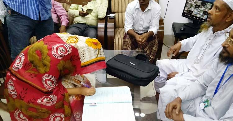 ভোলাব ইউনিয়ন পরিষদের চেয়ারম্যান আলমগীর হোসেন টিটুর সহযোগিতায় উভয় পরিবারকে ডাকেন ইউএনও। দুপুরে দুই পরিবার উপস্থিত হলে সবার সম্মতিতে উপজেলা অডিটোরিয়ামে এ বিয়ের ব্যবস্থা করা হয়। উভয় পরিবারের সম্মতিতে ১০ লাখ টাকা কাবিন ও নবজাতকের নামে দুই শতক জমি লিখে দেয়ার চুক্তিতে এ বিয়ে হয়। প্রবাসী মোবারকের সঙ্গে ভিডিও কলের মাধ্যমে নাদিয়ার বিয়ে দেয়া হয়। বিয়ের শাড়ি, কাবিনের ফি ও বিভিন্ন খরচ নিজেই বহন করেন ইউএনও। এ বিয়ে সুষ্ঠু ও সামাজিকভাবে সমাধান হওয়ায় উপজেলা নির্বাহী কর্মকর্তার কাছে কৃতজ্ঞতা প্রকাশ করেন স্থানীয়রা।