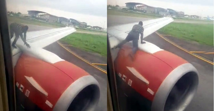শুক্রবার এমন আজব কাণ্ড করে বসলেন নাইজেরিয়ার এক তরুণ। বিমান ছাড়ার মুহূর্তে তার ডানায় উঠে বসলেন তিনি। তারপর বিমানের কেবিনে ঢোকার চেষ্টা করেন তিনি।