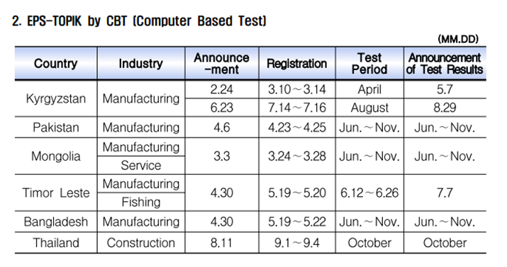 বহুল আকাঙ্ক্ষিত কোরিয়ায় কর্মী নিয়োগের পরীক্ষা “ইপিএস টপিক ও স্কিল টেস্ট” এর তারিখ ঘোষণা করেছে এইচআরডি কোরিয়া। এপ্রিলের ৩০ তারিখ বাংলাদেশের জন্য ইপিএসের বিজ্ঞপ্তি প্রদান করা হবে। মে মাসের ১৯ তারিখ থেকে ২২ তারিখ পর্যন্ত রেজিস্ট্রেশনের সুযোগ থাকছে। বাংলাদেশী যেকোন নাগরিক মেশিন রিডেবল পাসপোর্ট দিয়ে ইপিএসের রেজিস্ট্রশন করতে পারবেন।