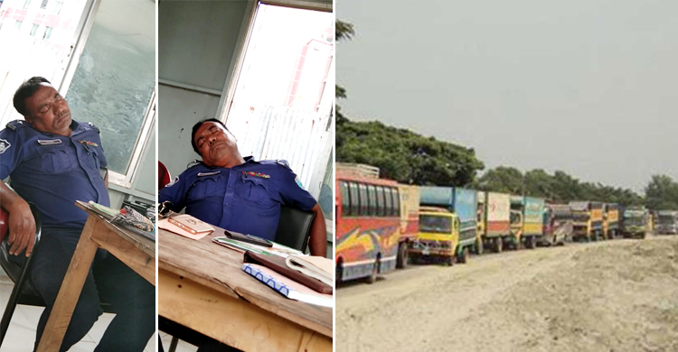 খোঁজ নিয়ে জানা যায়, পুলিশ বক্সের ভেতরে দুপুরের খাবার শেষে ঘুমিয়ে পড়েন ট্রাফিক পুলিশের ইন্সপেক্টর (টিআই) আবেদ খান। তখন মাঠের দায়িত্ব ছেড়ে চলে যান তার অধীনস্থ ট্রাফিক পুলিশের অন্য সদস্যরাও। ফলে মহাসড়কে দীর্ঘ যানজটের সৃষ্টি হয়। এতে সাধারণ যাত্রীরা চরম ভোগান্তিতে পড়েন।