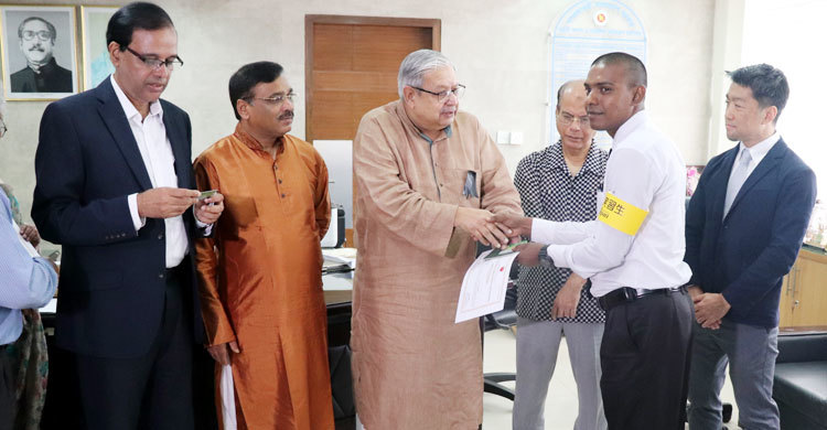 আইএম জাপানের সহায়তায় জনশক্তি কর্মসংস্থান ও প্রশিক্ষণ ব্যুরোর মাধ্যমে সরকারিভাবে বিনা খরচে জাপানে টেকনিক্যাল ইন্টার্ন প্রেরণ কর্মসূচির অংশ হিসেবে আজ (বৃহস্পতিবার) চারজন টেকনিক্যাল ইন্টার্নের হাতে স্মার্ট কার্ড প্রদান করা হয়।