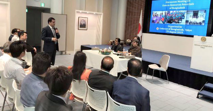বাংলাদেশের মানবসম্পদের সম্ভাবনা নিয়ে জাপানের টোকিওতে দক্ষ কর্মী প্রেরণকারী ও গ্রহণকারী প্রতিষ্ঠানের প্রতিনিধিদের সঙ্গে দূতাবাসের একটি আলোচনাসভা অনুষ্ঠিত হয়েছে। বৃহস্পতিবার দূতাবাসের বঙ্গবন্ধু মিলনায়তনে রাষ্ট্রদূত রাবাব ফাতিমার সভাপতিত্বে ও সঞ্চালনায় আলোচনায় উপস্থিত ছিলেন প্রবাসীকল্যাণ ও বৈদেশিক কর্মসংস্থান মন্ত্রণালয়ের সচিব রওনক জাহান।