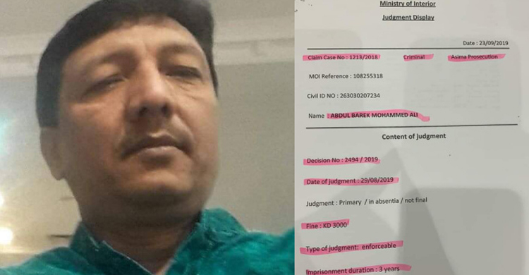 কুয়েতে আব্দুল বারেক নামে এক বাংলাদেশিকে জাল ভিসা ব্যবসার সাথে জড়িত থাকার অপরাধে তিন বছরের জেল ও তিন হাজার দিনার জরিমানা করেছেন দেশটির আদালত। এ ছাড়া অপর এক মামলায় ৩ বছরের জেল দিয়েছেন কুয়েতের ক্রিমিনাল কোর্ট।