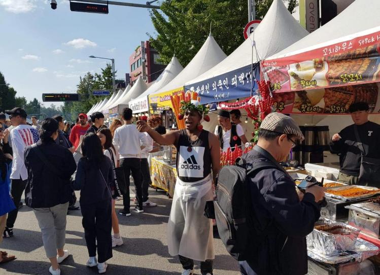 korea-festival-bd১৩ অক্টোবর উৎসবে অংশগ্রহণকারী দেশগুলোর রাষ্ট্রদূত ও কূটনৈতিক প্রতিনিধিদের উপস্থিতিতে ইয়ংসান ডিস্ট্রিক্ট মেয়র জাং হিয়ন-সং আনুষ্ঠানিকভাবে উৎসবের উদ্বোধন করেন। উৎসবের মূল মঞ্চে বিভিন্ন দেশের সাংস্কৃতিক কার্যক্রম উপস্থাপন করা হয়। বিকেল ৩টায় গ্লোবাল প্যারেডে দূতাবাসের সব সদস্যসহ কোরিয়াতে বসবাসরত বিভিন্ন পেশার নারী-পুরুষ এবং শিশুরা রং-বেরংয়ের শাড়ি ও ঐতিহ্যবাহী বাংলাদেশি পোশাক পরে ঢোল, ফেস্টুন ও বাংলাদেশের পতাকা নিয়ে অংশ নেন।