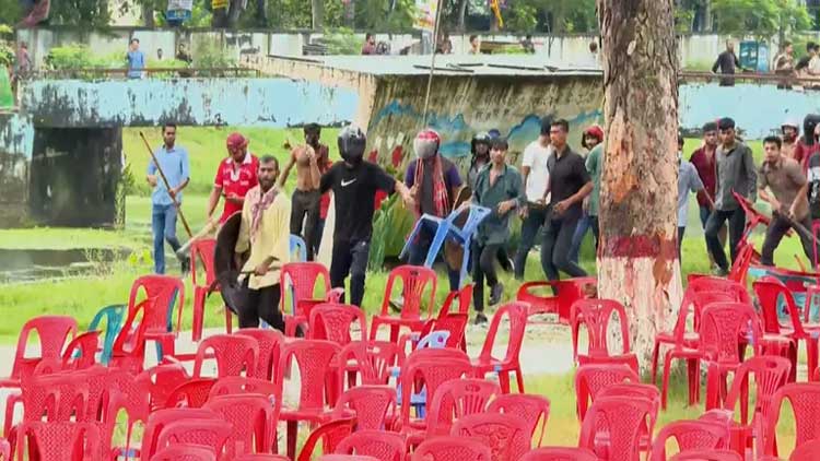 গোপালগঞ্জে জাতীয় নাগরিক পার্টির (এনসিপি) সমাবেশস্থলে হামলা করেছে নিষিদ্ধ ঘোষিত সংগঠন ছাত্রলীগের নেতাকর্মীরা। এসময় কয়েকটি ককটেল বিস্ফোরণের ঘটনাও ঘটে।। বুধবার (১৬ জুলাই) দুপুরে শহরের সমাবেশস্থলে হামলা চালিয়ে ব্যানার-পোস্টার ছিঁড়ে ফেলে এবং চেয়ার ভাঙচুর করে তারা। […]