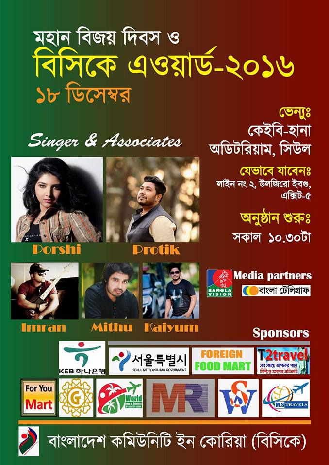 জমকালো আয়োজনের মধ্য দিয়ে শেষ হলো বিসিকে এওয়ার্ড ২০১৬। কোরিয়ায় বিভিন্ন খাতে অবদান রাখা ১৮ জন বাংলাদেশী, ৩ জন কোরিয়ান এমপ্লয়ার, ৩ জন কোরিয়ানকে কোরিয়ান অব দ্য ইয়ার ফর বাংলাদেশ এওয়ার্ড তুলে দেওয়া হয়। […]