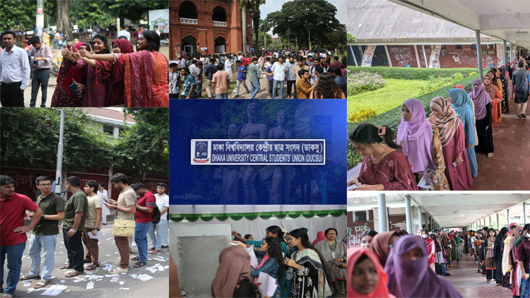 সকাল থেকেই উৎসবমুখর পরিবেশে চলছে বহুল প্রতীক্ষিত ঢাকা বিশ্ববিদ্যালয় কেন্দ্রীয় ছাত্র সংসদ (ডাকসু) ও হল সংসদ নির্বাচনের ভোটগ্রহণ। মঙ্গলবার (৯ সেপ্টেম্বর) সকাল ৮টা থেকে ভোটগ্রহণে শান্তিপূর্ণভাবে অংশ নিচ্ছেন শিক্ষার্থীরা।